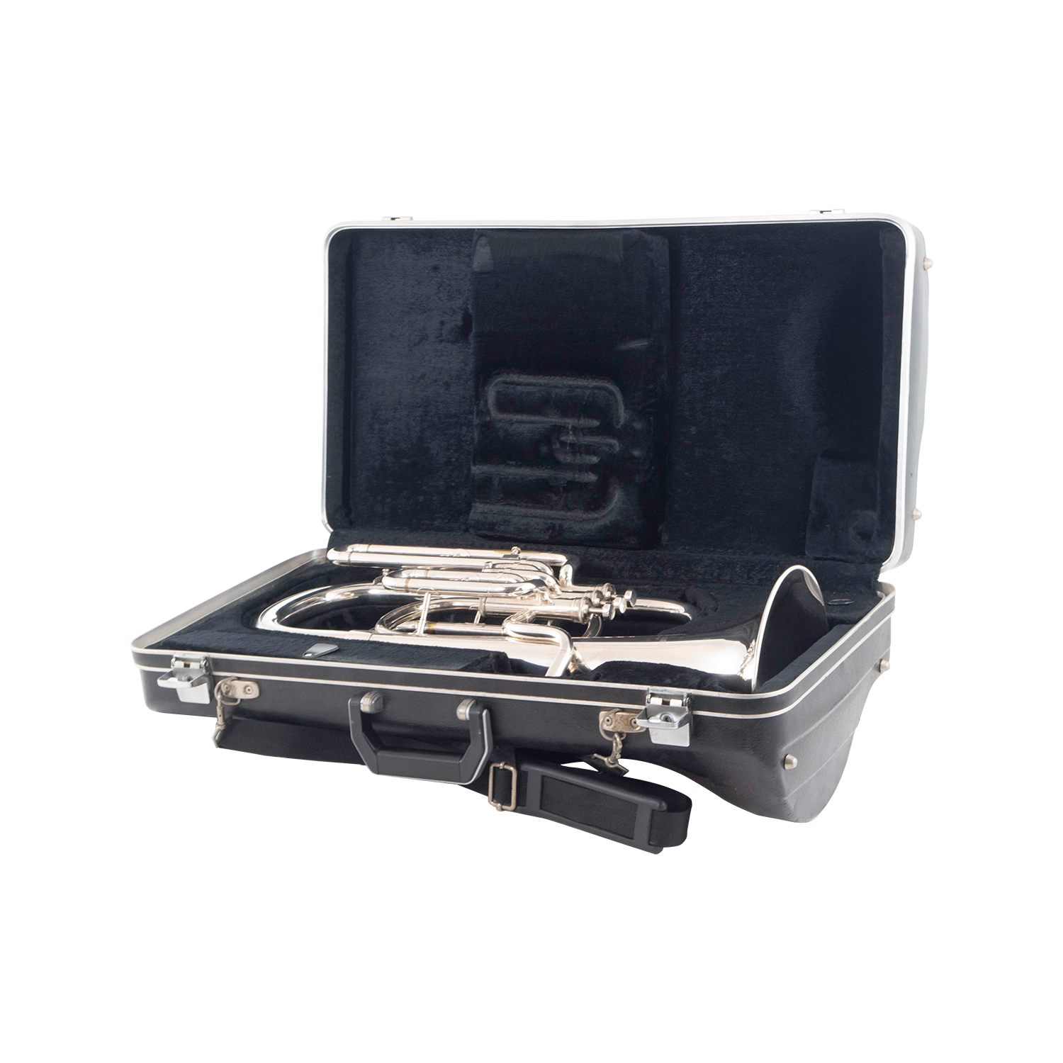 This baritone is supplied in a lockable hard-shell case with metal clasps, and a G15 mouthpiece in a leather pouch.