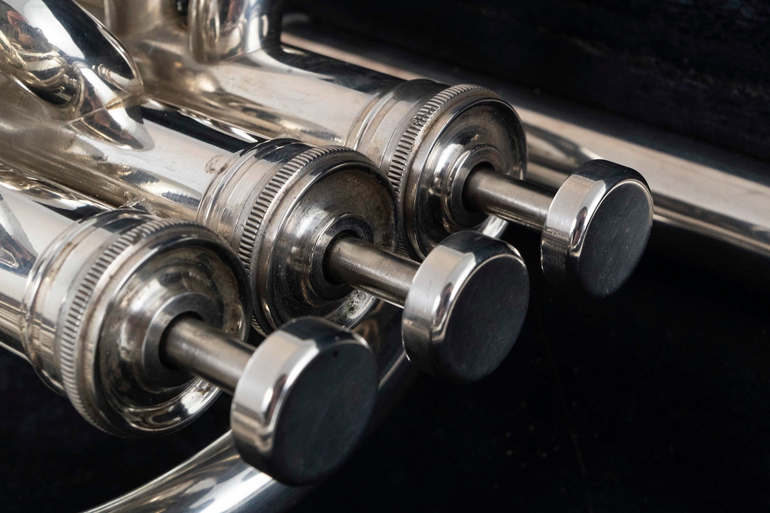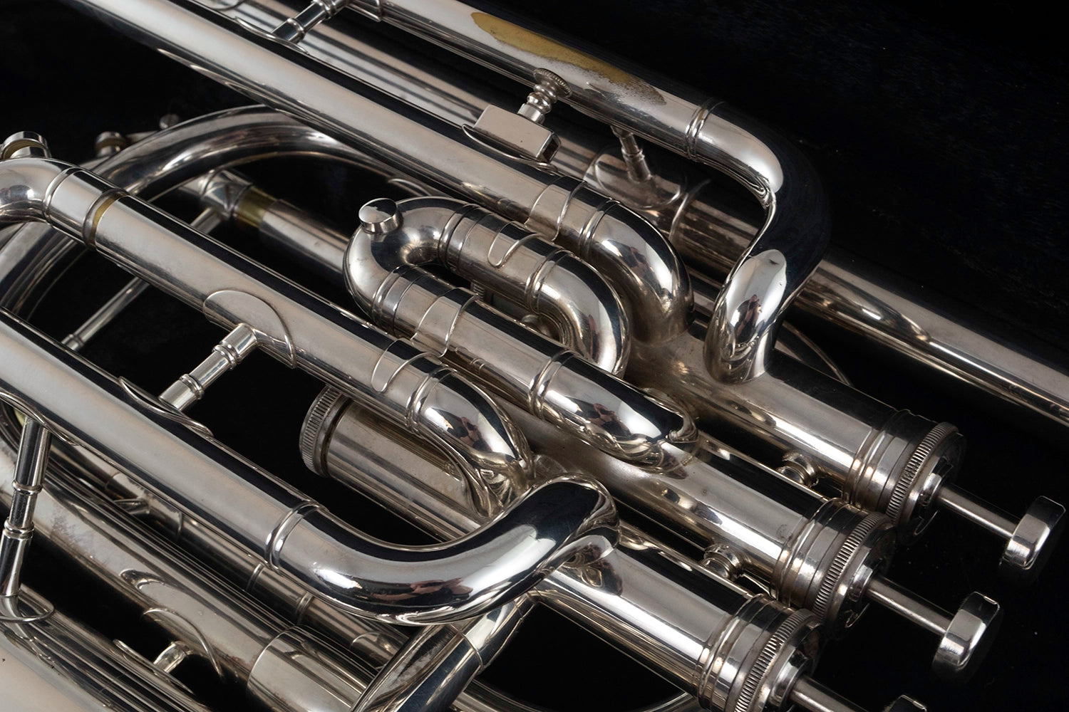 Wear & Tear Observations: This B&H baritone is in good order, and is in nice cosmetic condition for it's age. There is some plating loss on the 3rd valve slide stock which the instrument is held, and on the outer side of the bottom bow where the instrument as taken a minor knock. There are a few other small dings, one on the outer side of the top bow, and a couple in the bell-flare and bell-throat.