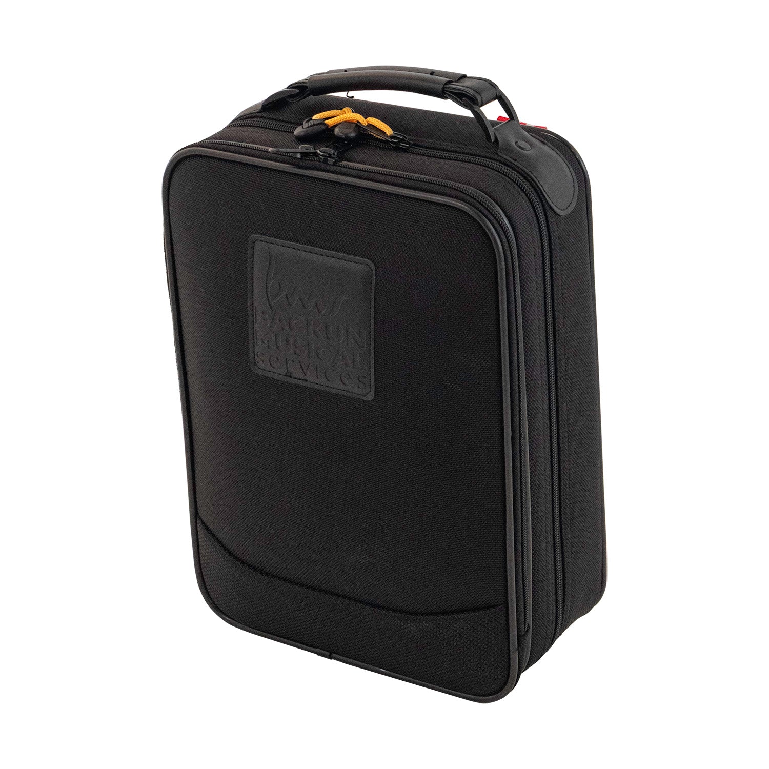 This Backun Protégé comes in it's original Bam style fabric covered hard case with backpack straps. There is no mouthpiece set included and the original barrel has been upgraded with a Backun fatboy grenedilla 63mm. There is also a corkgrease, pullthrough and the original care pamphlets.