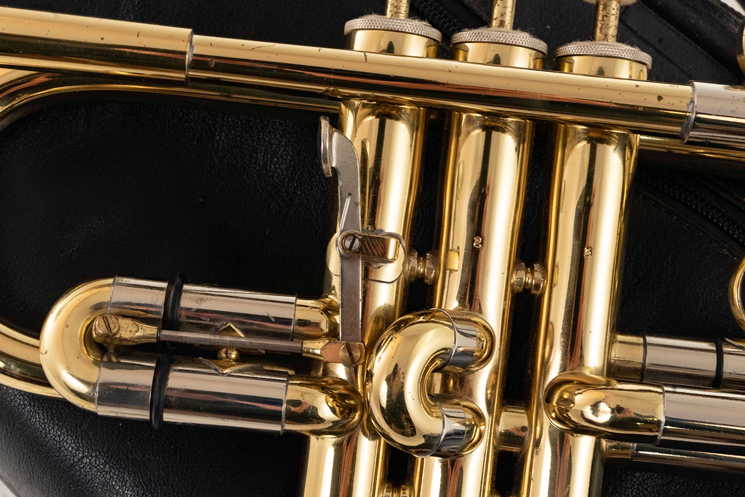 Wear & Tear Observations: This trumpet and its lacquer are in a good condition with only some minor scratching to the leadpipe, bow and along the length of the bell. There is a small dent in the join between the leadpipe and third valve. This instrument has been checked over by our workshop ready for sale with all slides and valves moving freely and smoothly.