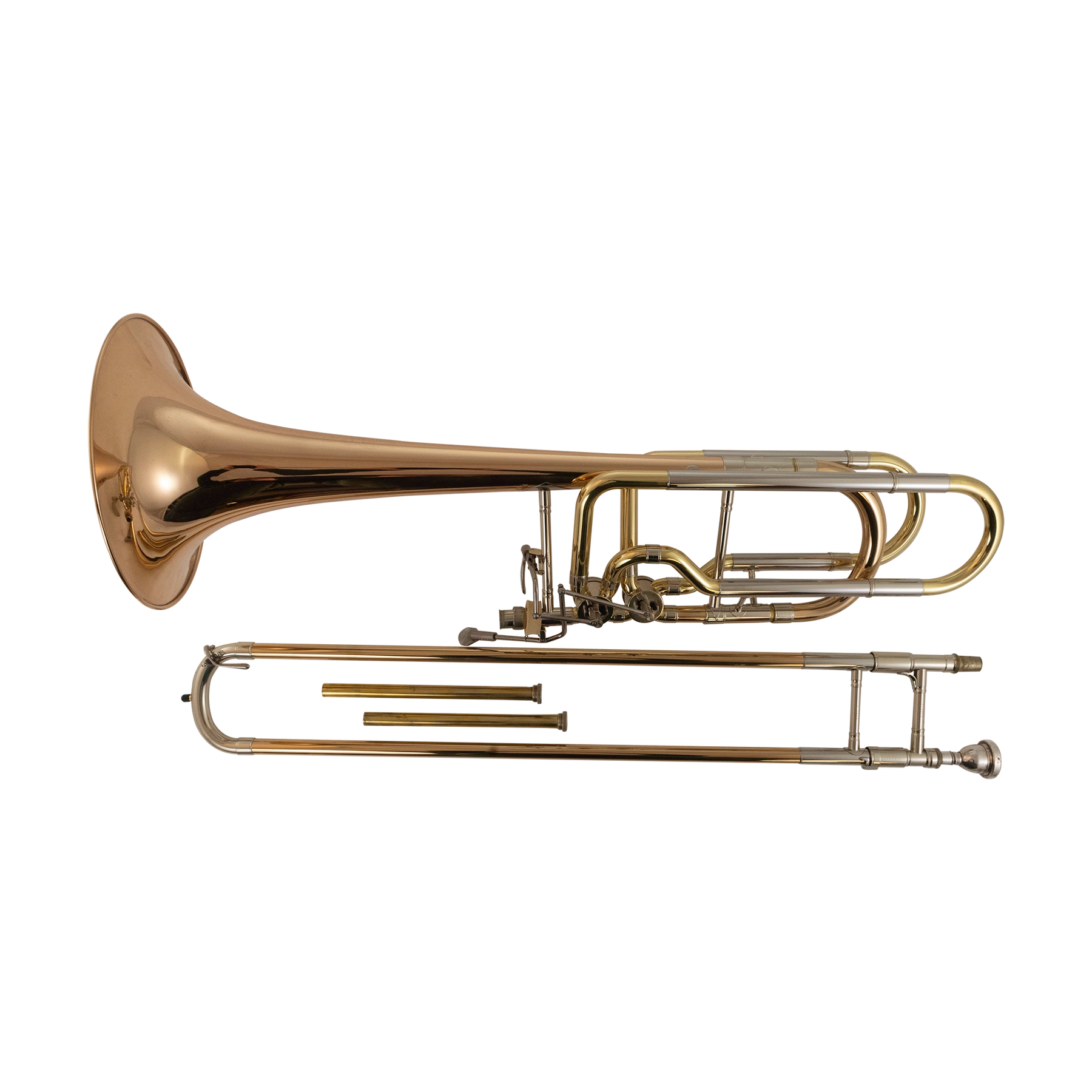 The Conn 62HI in-line independent double rotor bass trombone in the key of Bb/F/Gb features an 9-1/2" professional rose brass bell producing a warm, rich sound. The .562" primary bore combined with .594" bore through rotor sections offers outstanding clarity and projection with less resistance.