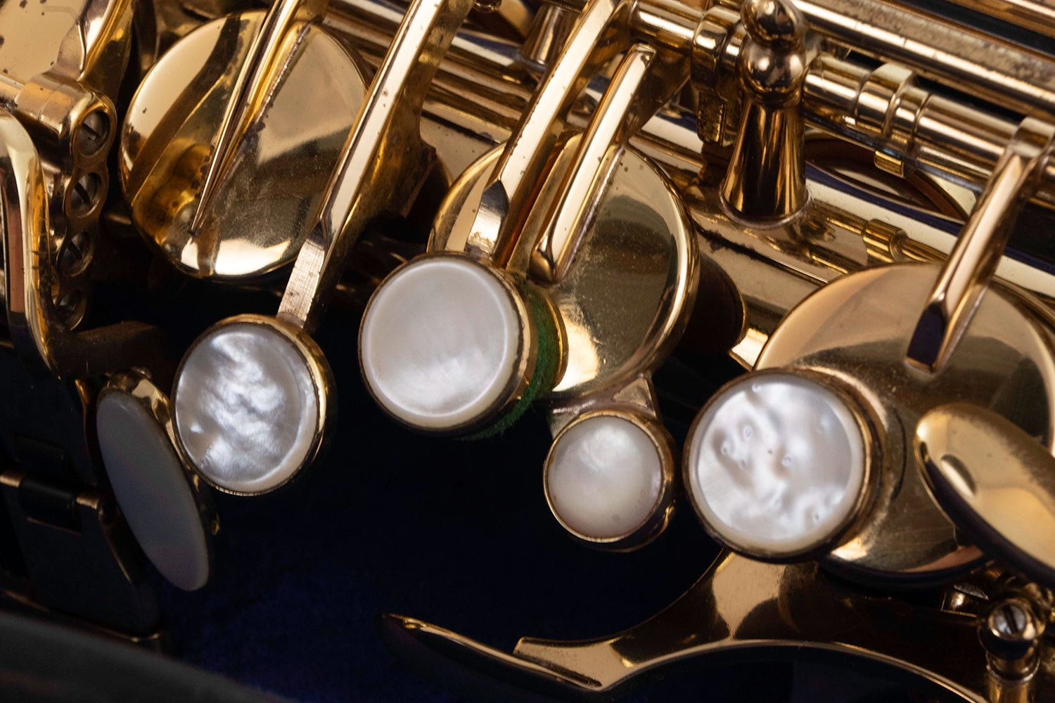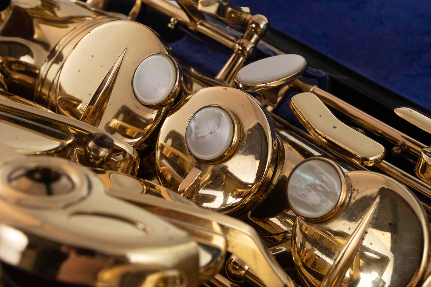 There is a significant lacquer bleed and some smaller ones also to the saxes crook. This sax has recently had a service completed ready for sale.